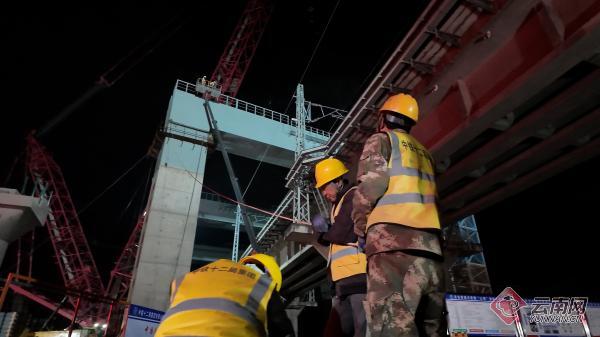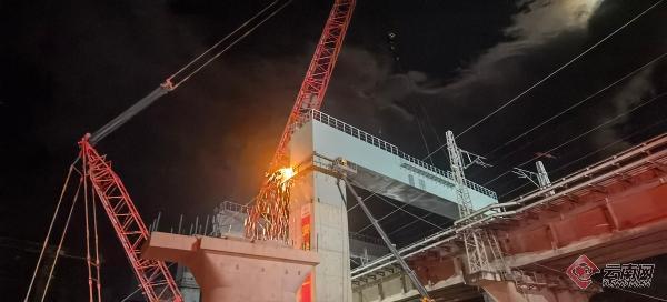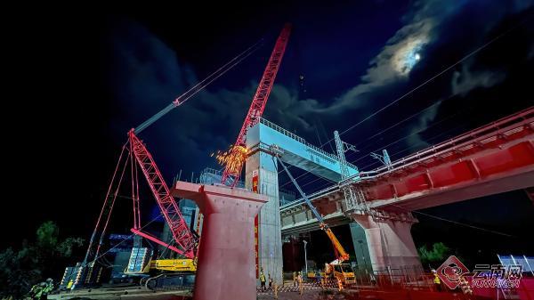 当天凌晨0点30分,一弯弦月穿行在薄云之间。随着机器轰鸣声响起,由中铁十二局承建的大理铁路枢纽工程迎来关键时刻——关凤大道双线特大桥第五段门式墩钢盖梁的吊装作业正式开始。