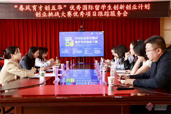 5月15日,昆明市五华区聚焦首届蓝花楹杯国际青年创新创业大赛成果,精心组织开展优秀项目跟踪服务,汇聚政府职能部门、在昆重点高校、人力资源企业代表等主体,围绕大赛中优秀项目资源对接、孵化落地等内容,开展深度交流、密切协作,助力国际青年梦想在春城热土生根绽放。