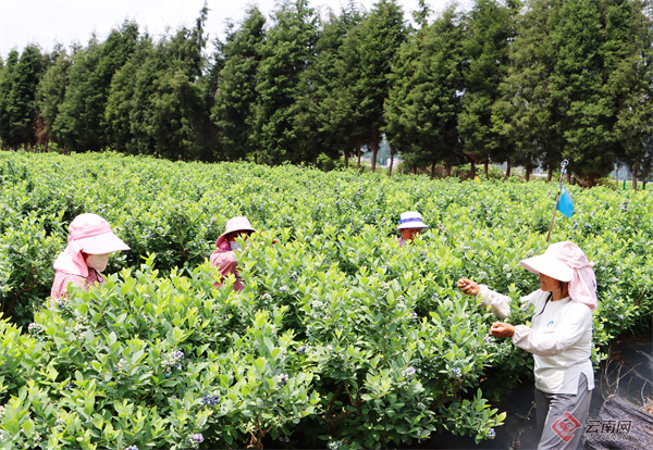 入夏以来,曲靖市马龙区近万亩蓝莓进入采收期,迎来了甜蜜的丰收季,一颗颗饱满圆润的蓝莓果不仅味道香甜,更让当地群众增收致富。