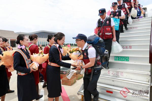 5月18日,中国政府援缅卫生防疫队的50名队员圆满完成任务,搭乘东航MU7692从仰光至昆明的航班返昆。12时13分,航班平稳降落在昆明长水国际机场,舱门开启,中国政府援缅卫生防疫队员依次走下客梯,工作人员送上鲜花,向他们表达最崇高的敬意。