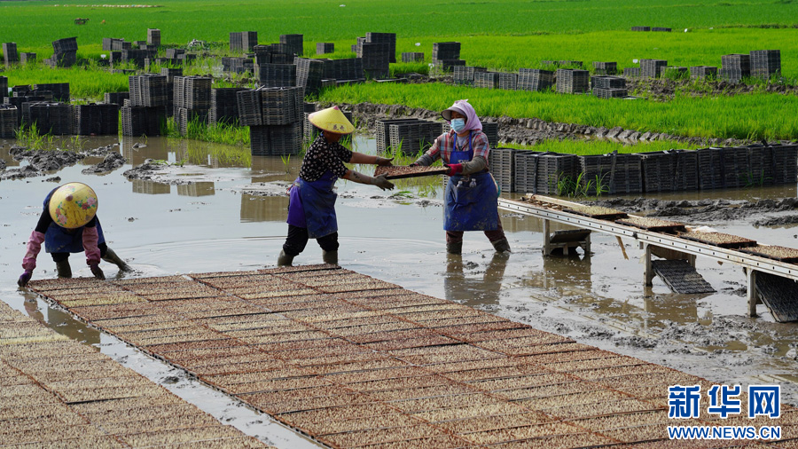 农户栽种秧苗(5月16日摄)。新华网发(李升宽 摄)