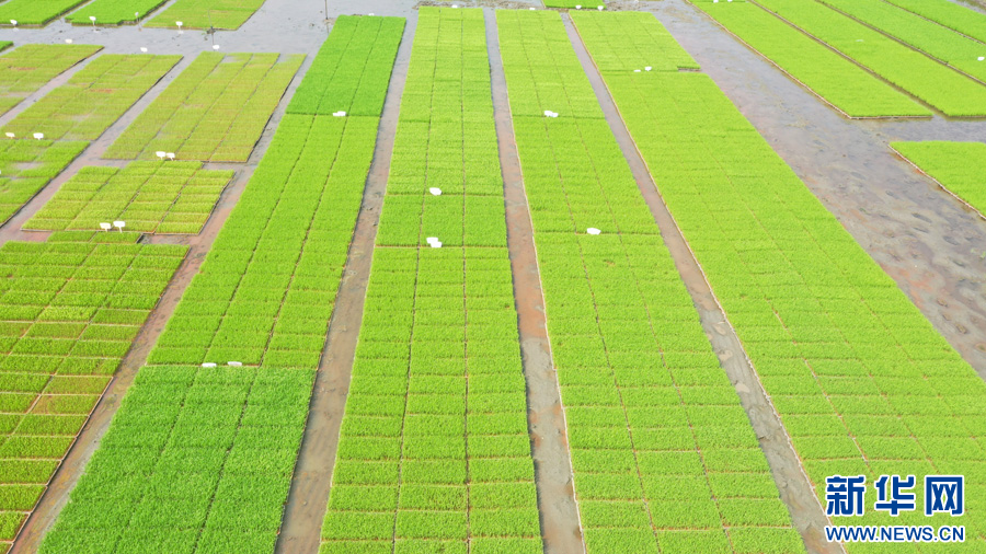 栽种好的秧苗(5月16日摄)。新华网发(李升宽 摄)