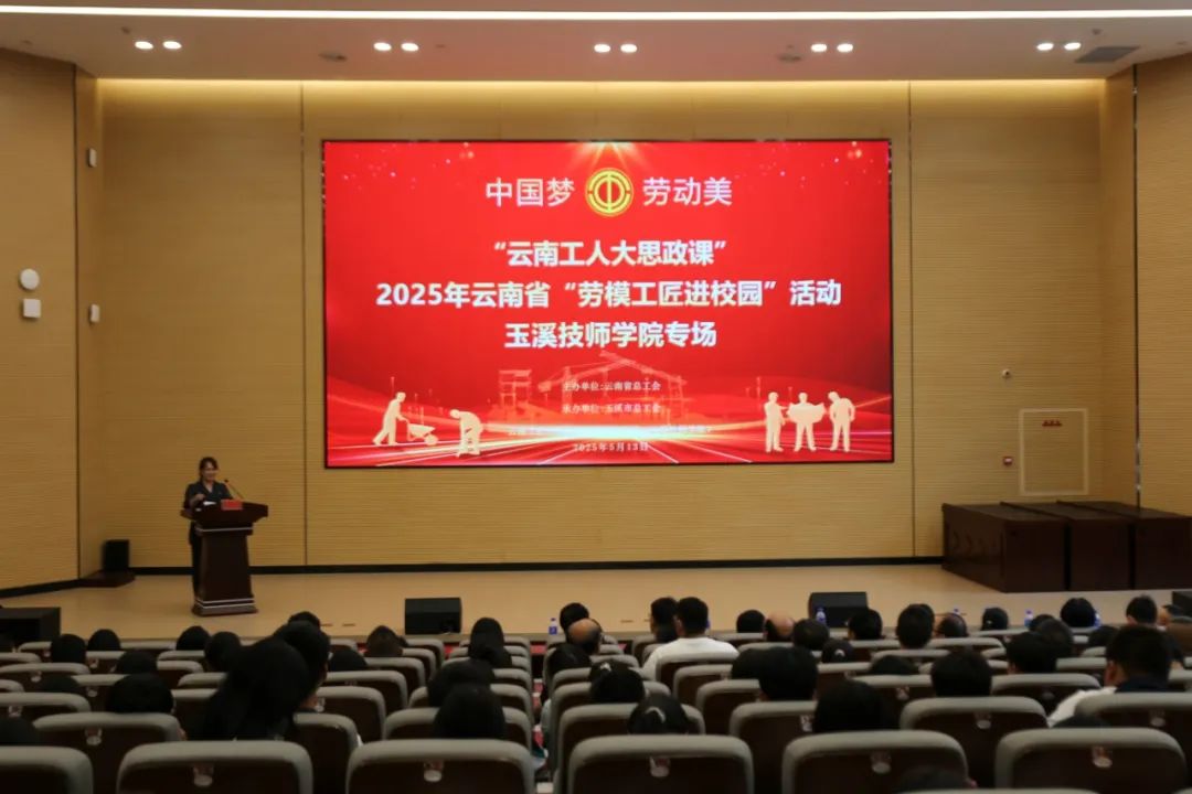 为庆祝中华全国总工会成立100周年,进一步弘扬劳模精神、劳动精神和工匠精神,5月13日,由云南省总工会主办,玉溪市总工会、云南工匠学院玉溪技师学院校区承办的“云南工人大思政课”2025年劳模工匠职工宣讲活动走进玉溪技师学院校区,300余名师生代表参加宣讲活动。