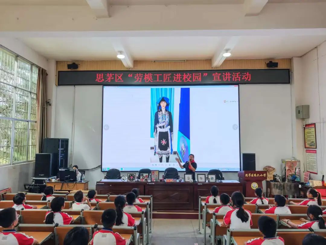 为深入学习贯彻习近平总书记关于弘扬劳模精神、劳动精神、工匠精神的重要指示精神,发挥劳模工匠示范引领作用。5月15日,思茅区群团联盟(思茅区总工会)在思茅区第六小学开展“劳模工匠进校园”——哈尼族传统服饰制作宣讲活动。