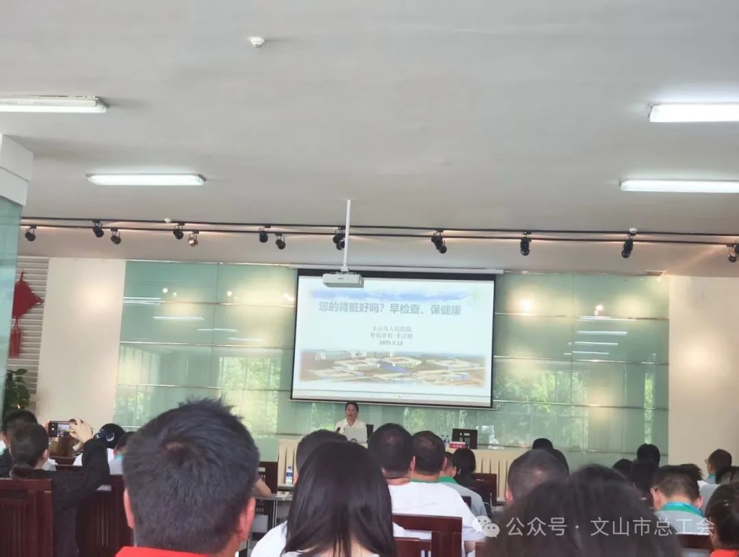 文山州劳模、市第二人民医院执行院长李彦艳以“坚守医者初心 守护生命健康”为主题,分享她在肾病诊疗领域深耕二十余载的奋斗故事。从带领团队攻克高难度手术到填补地区科研空白,以鲜活案例诠释劳模攻坚克难、敬业奉献的精神内核。同时,聚焦职工健康问题,结合临床经验,给大家科普肾病预防知识,倡导合理饮食、定期体检等科学理念,帮助职工树立健康意识。