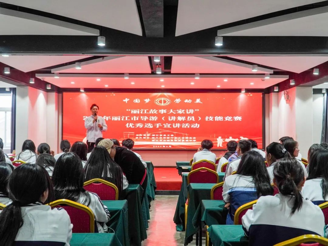 5月16日下午,“丽江故事大家讲”宣讲进校园活动举行。来自全市文旅行业的10位优秀讲解员代表与古城区职业高级中学的100余名师生齐聚一堂,通过沉浸式分享交流,共同探索丽江文化的传承与发展路径。