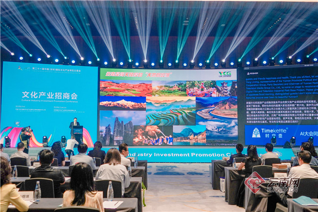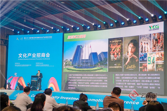 5月24日,第二十一届中国(深圳)国际文化产业博览交易会文化产业招商会在深圳举行。会上,云南广电传媒集团推介云南数字影视产业园(基地)项目,向全球影视文化产业发出合作邀请,共创“美丽故事”。