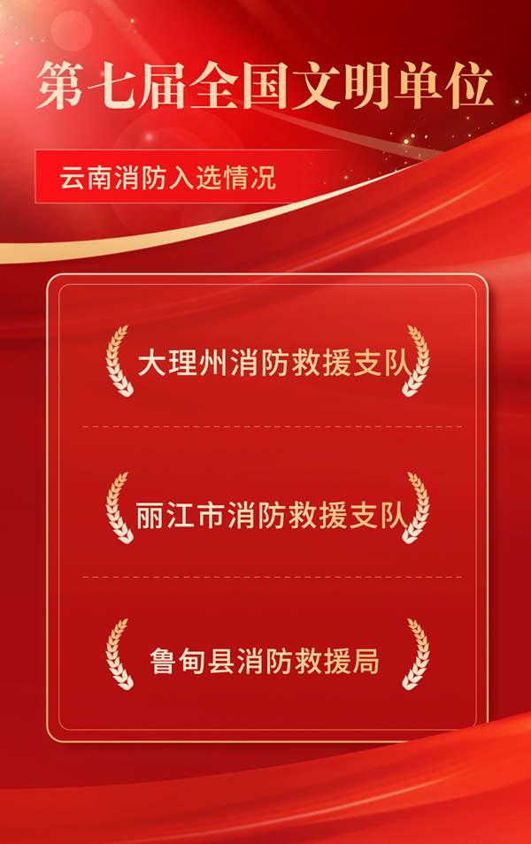 近日,全国精神文明建设表彰大会在北京召开,中央宣传思想文化工作领导小组决定,授予4688个单位全国文明单位称号。云南省消防救援总队3个集体被授予“全国文明单位”称号。