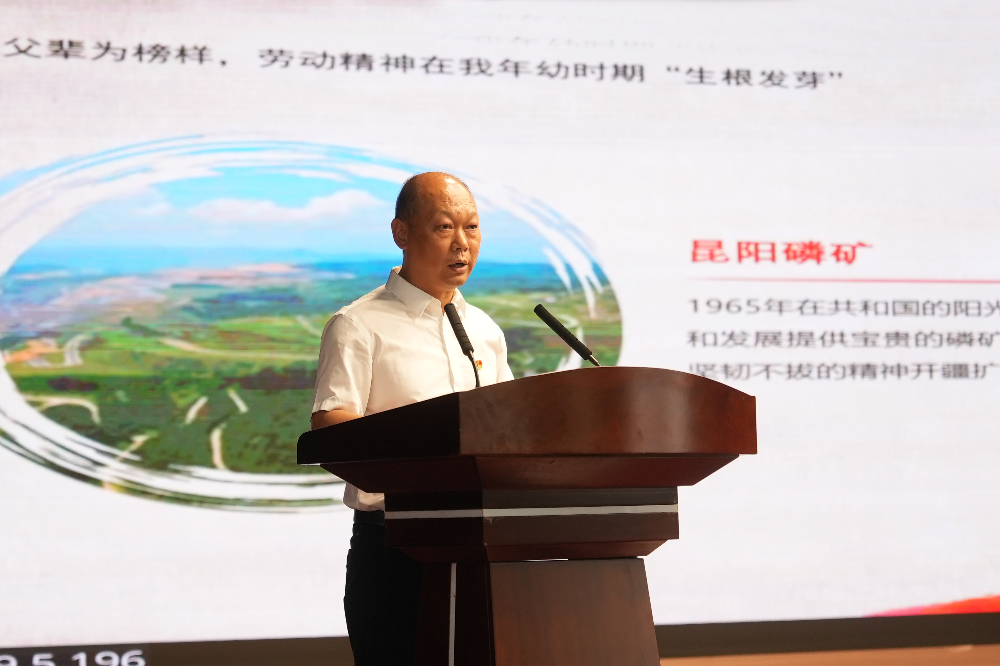 云南省总工会劳模工匠职工宣讲团成员、全国模范退役军人、云南省五一劳动奖章获得者、磷化集团兼职工会副主席裴贵虎同志,以《传承》为题,讲述了当年获评省化工厅“优秀青年”的父亲对自己的教诲和影响,“一条皮带的故事”串起两代磷化人对“劳动精神”的深刻诠释。父亲像一盏明灯,用行动教会他“生活的价值不只在于个人的得失,更在于能为他人、为社会做出多少贡献”的人生信条;军旅生涯则如同淬炼钢铁的熔炉,将“保家卫国是军人天职,但脱下军装更要当好人民后盾“的信念铸进他的骨髓;岗位的历练让他成长为业务带头人,带领班组交出一份耀眼的成绩单:全国总冠军1人、省级技术状元3人、省级技术能手7人,如雨后春笋般涌现。他的故事见证了技艺与精神的传递,展现了传承与奋斗的魅力。