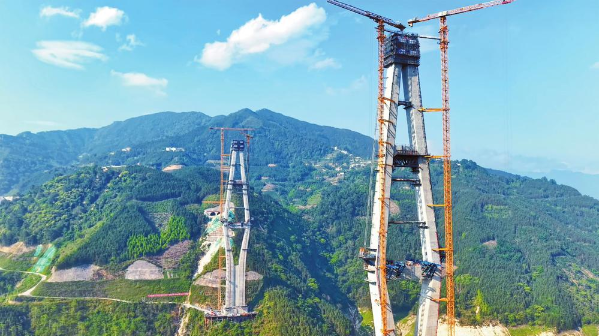 马鹿塘特大桥横跨南温河,全长1005.5米,主跨480米,两个主墩高达250余米,为双塔双索面半漂浮体系钢混组合梁斜拉桥,为尽可能减少对周边生态环境的破坏,项目部采取泥浆循环净化工艺,积累了泥浆循环净化工艺应用、高墩施工技术等15项先进经验。马鹿塘特大桥两座主墩封顶后,将进入斜拉索安装施工阶段。