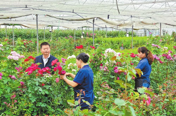从引进外来品种到实现品种自主研发,从有土栽培到无土栽培,从水肥灌溉到水肥一体化改良,始于1991年的通海花卉产业,经过多年发展,已形成了“品牌+基地+标准+农户”的产业化经营模式,通过统一生产标准、加工标准、价格、品牌、运输和销售,依托电商直播、冷链物流等新业态,通海花卉产品48小时内即可送达全国主要城市,成为“云品出滇”的新名片。此外,与省农科院、国际科研机构深度合作,培育出“锦海”“金辉”“中国红”等20多个具有自主知识产权保护的玫瑰花新品种,辐射带动周边一大批种植户增收致富。