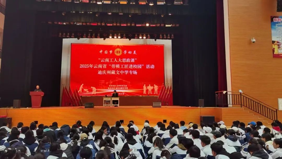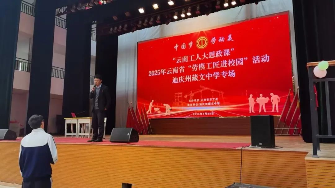 5月23日,迪庆州总工会联合迪庆州藏文中学举办2025年云南省“劳模工匠进校园”活动,1400余名师生齐聚一堂,聆听全国先进工作者、德钦县人民医院常务副院长尼玛次里的精彩宣讲。活动以“匠心铸就梦想,传承焕发新生”为主题,通过劳模事迹分享与师生互动问答,为青年学子播撒文化传承与职业理想的火种。