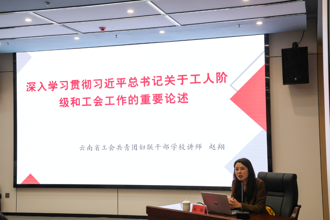 活动中,云南省工青妇干校工会培训部副主任、讲师赵翔围绕学习习近平总书记关于工人阶级和工会工作的重要论述进行了系统解读,并结合实际案例深入剖析了新时代工会工作的使命与担当,激励工会干部要牢记初心使命,勇于担当作为,不断创新工作方式方法,以更加饱满的热情和更加扎实的工作,团结带领广大职工为实现中华民族伟大复兴的中国梦而努力奋斗。