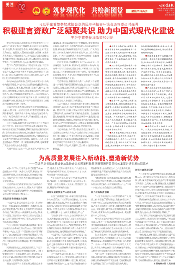 2024年3月8日“筑梦现代化 共绘新图景”聚焦全国两会版面