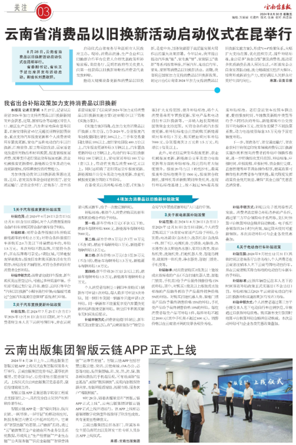 2024年8月30日“云南省消费品以旧换新活动启动仪式在昆举行”报道版面