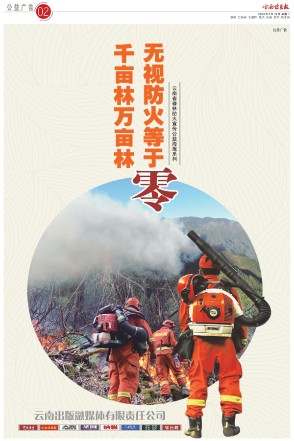 《云南信息报》全年在乡村振兴、森林草原防火灭火、光盘行动、禁毒斗争、提倡传统节日、提升全民道德水平、普法教育、安全应急、反电信诈骗等方面的公益报道不少于200篇,《云南信息报》刊登公益广告不低于24个整版,报社原创公益广告、标识50个。