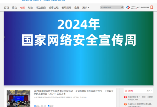 所属网站乐云网在主题宣传中,发挥网络媒体的快捷、集纳优势,开设了“学习贯彻党的二十届三中全会精神”“新思想引领新时代改革开放”“党纪学习教育”“中华人民共和国成立75周年”“整治形式主义 为基层减负”“锦绣中国年”“‘作风革命效能革命’在云南”“2024 网络中国节”“2024年国家网络安全宣传周”等专题,刊发相关报道,起到主阵地、主渠道、核心传播的重要作用。