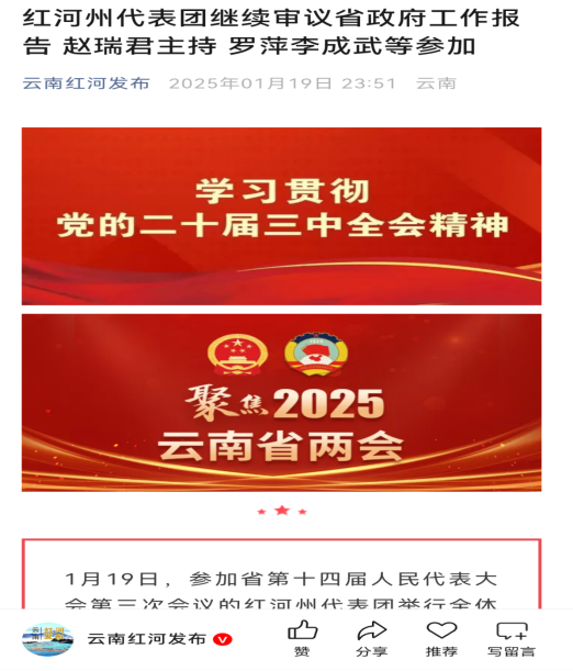 2.高质量圆满完成各项重大活动报道。在中共红河州委九届六次、七次全会、2024年红河州两会、投资中国红河专场以及新中国成立75周年“祖国好红河红”、南博会、中越边交会等重大宣传策划中,推出大量首发、独家、深度、原创报道,全面提高重大会议、重大活动宣传的声量、质量、流量。