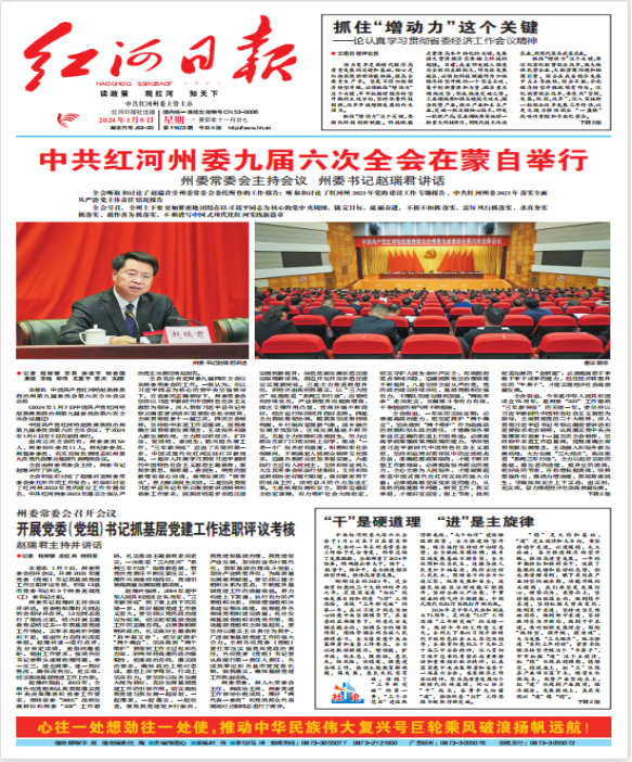 坚持以习近平新时代中国特色社会主义思想为指导,巩固壮大奋进新时代的主流思想舆论。以新质生产力助力内容生产、传播手段提质增效,提高讲好红河故事的能力,推动新闻宣传工作再上新台阶。