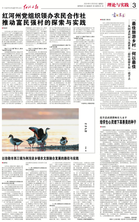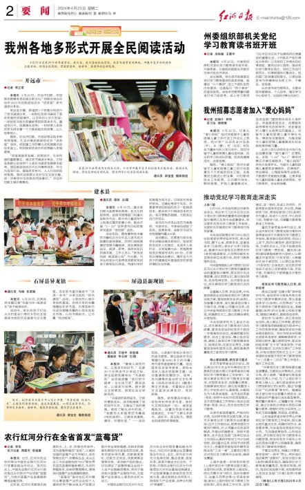 3.重大选题宣传报道亮点纷呈。聚焦州委“337”工作思路和州委、州政府中心工作,先后开设“筑梦现代化共绘新图景”“践行‘十种鲜明导向’红河见行动出实效走在前”“绿水青山就是金山银山”“铸牢中华民族共同体意识”“对外开放”等10余个专栏,累计刊播宣传报道15280条次,展现了红河高质量发展的新实践、新气象、新图景。