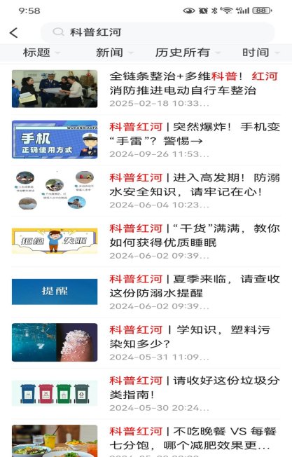 开设“红河科技”“科普红河”专栏,做好科技创成果宣传报道,展示广大科技人员牢记使命、潜心科研、锐意创新的风采。深入报道各地开展的“卫生科学文化”三下乡活动、农业科技培训、各类科技展览等,积极推送有关科技知识。