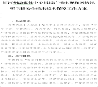 红河州融媒体中心坚决守住安全底线、筑牢安全防线,提高防范化解风险隐患能力,确保政治、内容、传输、刊印、播出、技术安全,努力实现高质量发展和高水平安全的良性互动。