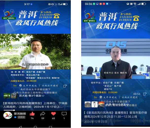 开设“办实事 解民忧”“民生关注 热点难点”“政风行风热线节目”“普洱问政”等栏目,积极报道各级各部门主动作为,为群众办实事的火热实践。同时,发挥舆论监督作用更好地服务民生,开设的广播节目《普洱政风行风热线》紧紧围绕市委、市政府中心工作,切实解决社会关注程度高、群众反映强烈的实际问题。2024年共播出23期,受理群众诉求269件,上线嘉宾均作了现场解答或及时在节目后进行督办,办结率为100%,做到事事有答复、件件有回音,取得了良好的社会效果。