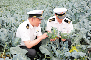 海关关员在出口蔬菜种植基地开展现场监管。马朝婷 摄