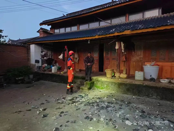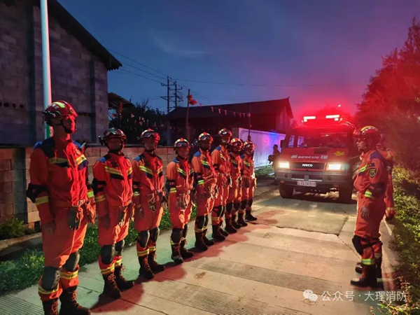 地震发生后,云南省消防救援总队立即启动应急响应,总队指挥中心第一时间调度了解情况,核实灾情。调派大理支队地震重型搜救队12车40人3犬,鹤庆、剑川大队地震救援分队各3车15人、洱源大队3车20人、洱源县三营专职队、牛街乡专职队各1车5人,共计23车100人3犬前赶赴震中排查灾情,支队全勤指挥部在指挥中心集结。
