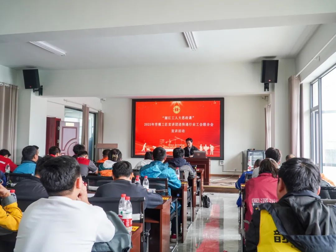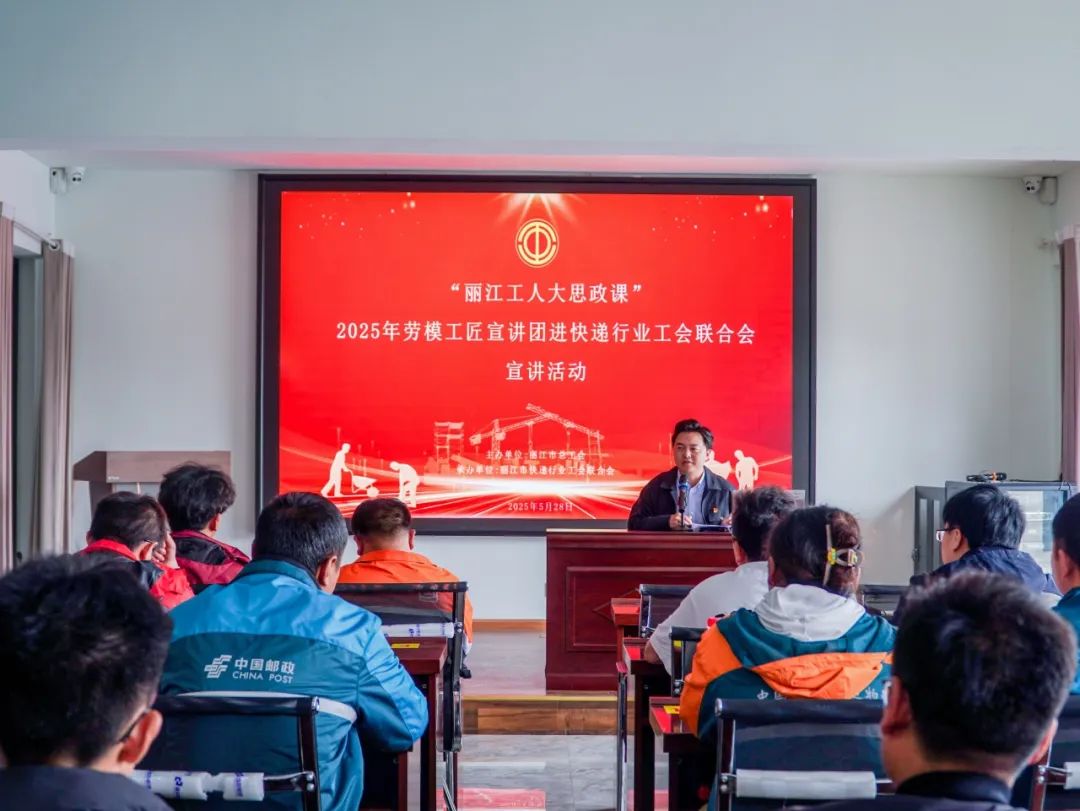 5月28日,丽江市总工会在快递园区组织“丽江工人大思政课”宣讲活动,来自全市各快递企业50余名从业者参加。