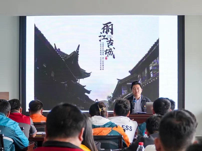 活动邀请全国五一劳动奖章获得者、丽江市总工会兼职副主席、丽江市导游行业工会联合会主席张宇同志担任主讲。张宇结合19年深耕旅游服务一线的工作经验,围绕丽江历史文化、人文故事及民族风情,为快递从业者进行宣讲。
