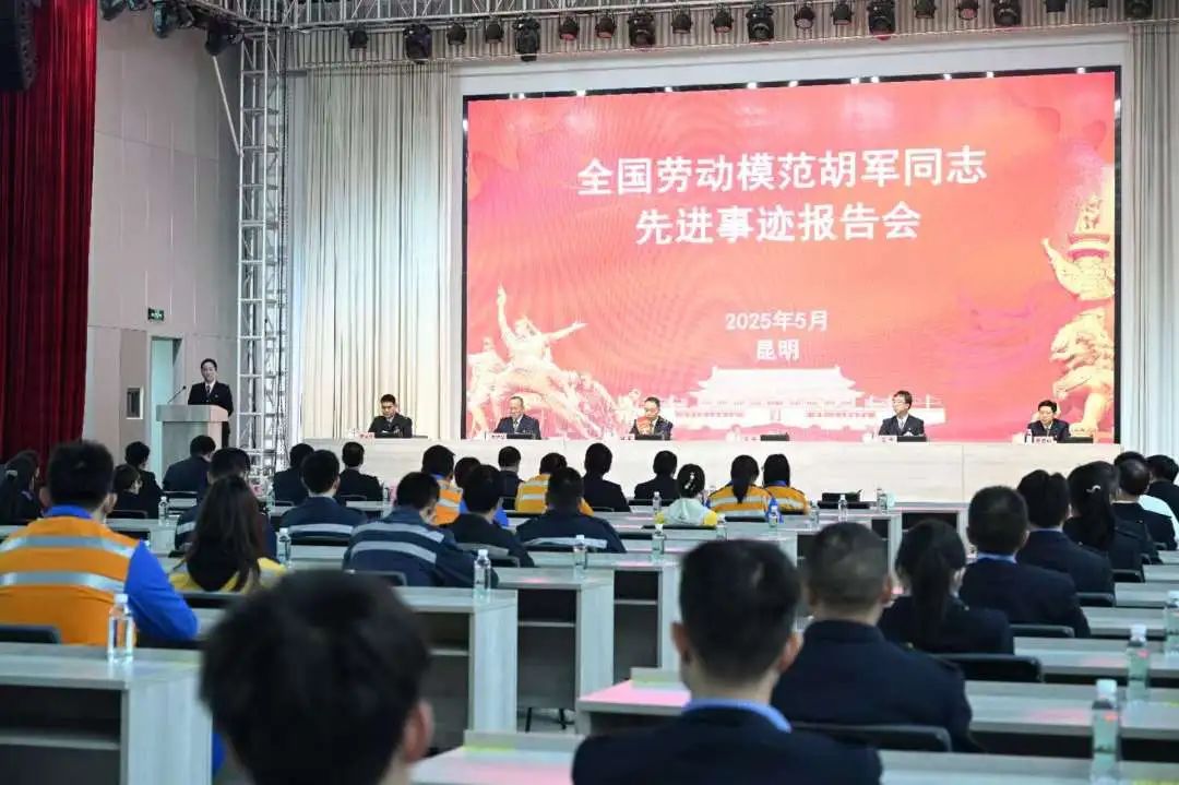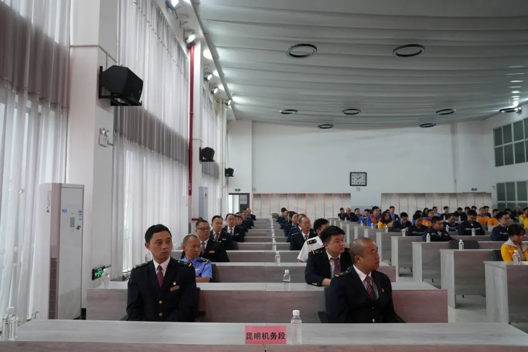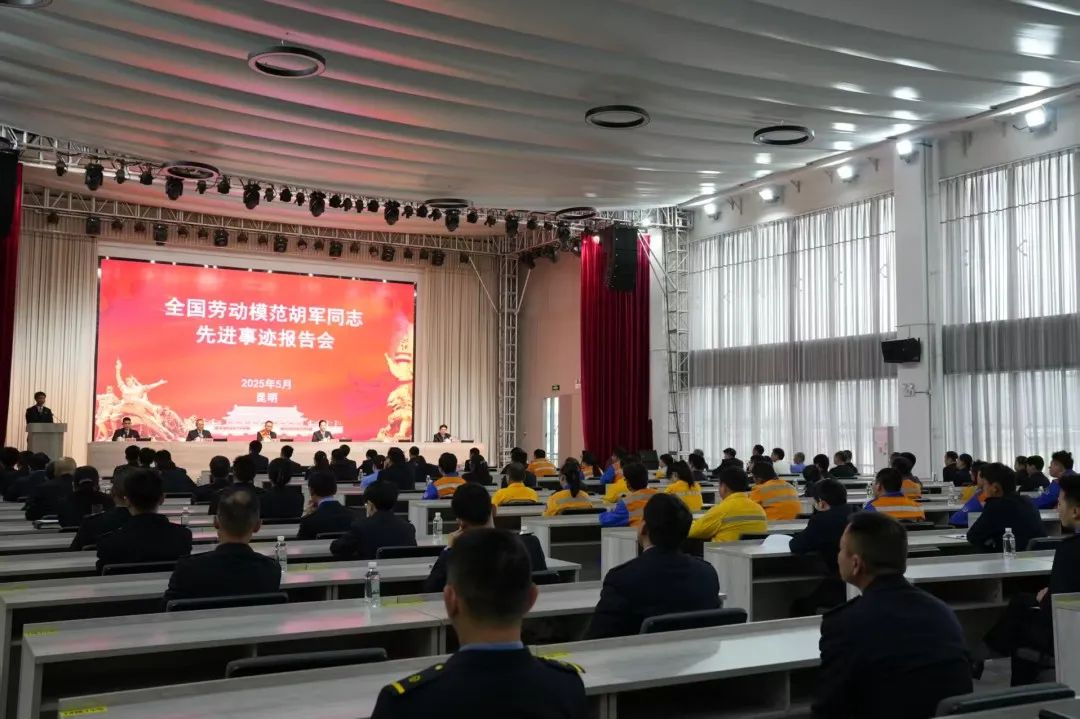 5月27日,昆明局集团公司党委组织全国劳动模范胡军宣讲团到昆明机务段开展宣讲,集团公司工会生产宣传部部长李正中主持报告会,昆东片区3家单位共计100余名职工代表参加了主题宣讲。