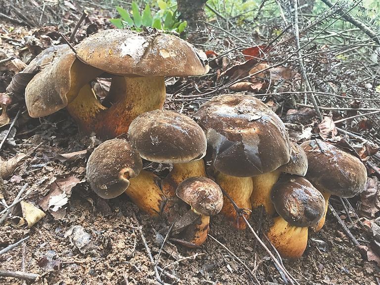 “观山探菌”是每一位彝人基因里携带的本能,观山脉走势,判日照阴阳,辨草木疏密,就能初步判断野生菌的有无。沿蜿蜒的山路一路攀爬前行,两旁的树木郁郁葱葱,像是为我撑起一把把绿色的大伞,微风拂过,树叶沙沙作响,仿佛在演奏着一曲山林的乐章。到了“菌窝”,我开始仔细地寻觅着野生菌的踪迹,眼睛在草丛中、树干旁不停地搜索,生怕错过任何一个小小的惊喜。突然,我发现了一处枯叶凸起,凭经验,枯叶下肯定是一窝菌子,轻轻地扒开枯叶和浮土,一窝牛肝菌赫然出现,将它摘下,放在手心,感受着它的柔软和湿润,嗅着它特有的幽香,心中便涌起一阵难以言喻的喜悦,这是我今天的第一个收获,虽然它不是什么珍贵的品种,但却让我感受到了大自然的神奇和慷慨。