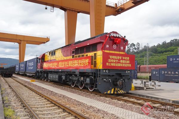 云南网讯(记者 杨萍)6月18日,在第9届中国—南亚博览会暨第29届中国昆明进出口商品交易会(以下简称:南博会)即将举办之际,“昆明陆港号”铁公海联运国际货运列车从昆明国际陆港安宁北港桃花村货运站启程,通过中老铁路以公铁联运方式经泰国拉廊港,海运至缅甸仰光。