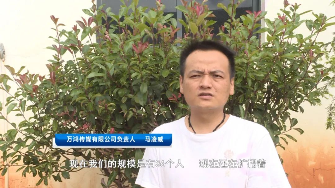 万鸿传媒有限公司负责人马凌威:我们现在运营的模式是做网上的电商,做各种电商平台走销量,然后每年的销量是几千万单,现在我们的规模是有36个人,现在还在扩招着,我们想往直播这方面走,因为现在行业内卷,我们能找新的突破口,直播这个方向是成本最低、效率最高的。