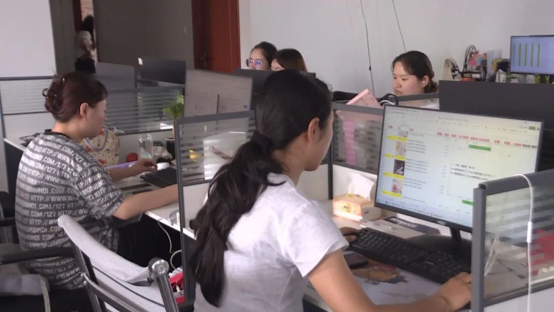 在中枢镇万鸿传媒公司的电商客服车间内,整齐摆放的电脑前一片繁忙,主播、策划、售后应有尽有,充满青年活力的十指在键盘上游刃有余操作着,精准匹配供需两端,借助“互联网+”便捷功能,主销商品视频、链接被推送到淘宝、拼多多、快手、抖音等多个电商平台,低门槛客服岗位广受高校毕业生青睐。