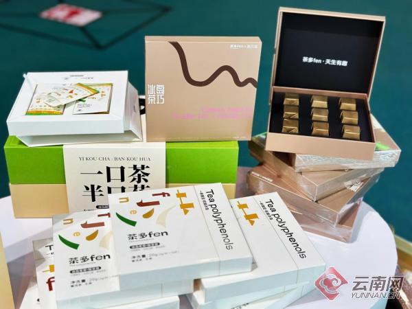 本届南博会上,“云茶强链计划”官方供应链平台带来了一款与潘祥记的共同打造“一口茶 半口花”新品,让名茶配茶点开启味蕾新体验;同时平台也带来了自主文创品牌——茶多FEN“天生有趣”系列产品。将传统普洱茶、非遗技艺与现代生活元素相融合,希望通过文创的纽带,让市场和客户品味到不一样的“云南味道”,成为吸引年轻受众群体链上有力、有趣的一环。