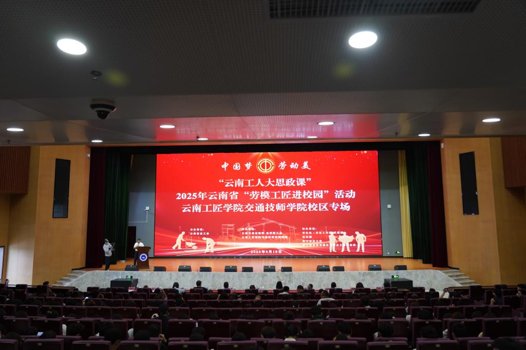 6月19日,由省总工会主办,学校承办的“云南工人大思政课”2025年云南省“劳模工匠进校园”专场活动暨张桂梅思政大讲堂分课堂在学校举行。活动特邀了全国劳动模范、全国五一劳动奖章获得者陈向华,云南省五一劳动奖章获得者魏丹作主题宣讲,学校领导、相关部门领导、师生代表共计500余人参加。