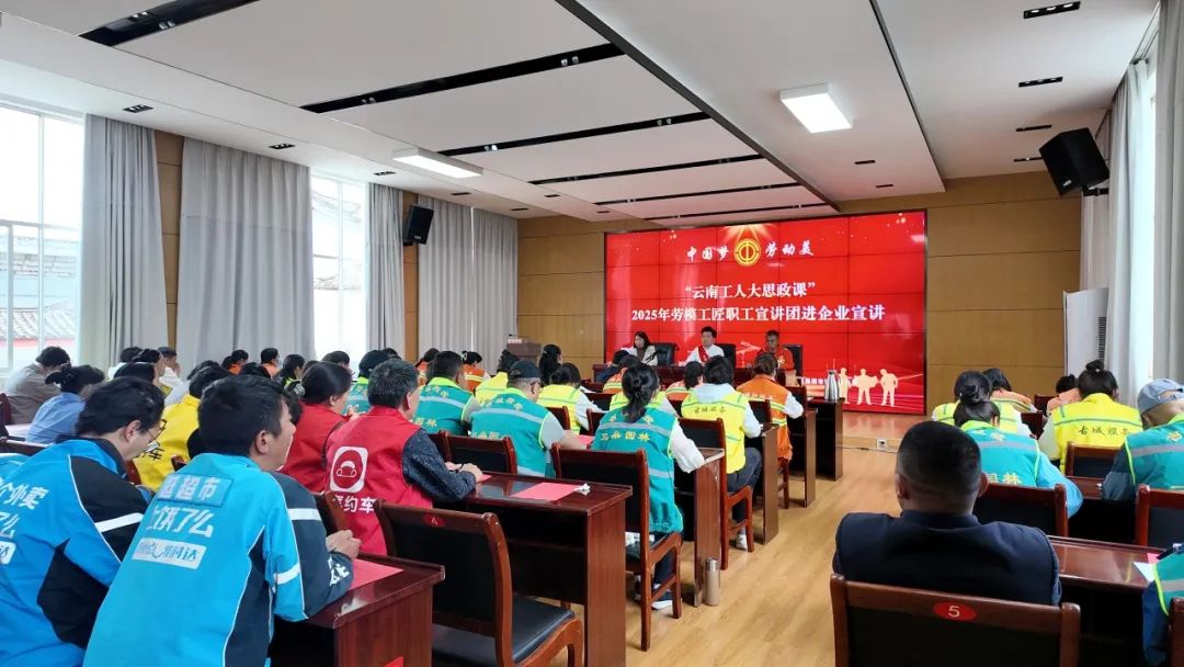6月19日上午,由云南省总工会、丽江市总工会联合主办的“云南工人大思政课”2025年“中国梦·劳动美——劳模工匠职工进企业”宣讲活动在丽江市古城区投资控股集团思政教育基地二楼会议室顺利举行。