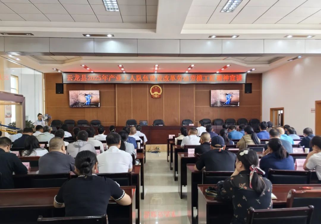 为大力弘扬劳模精神、劳动精神、工匠精神,发挥先进典型示范引领作用,激发广大干部职工干事创业热情,6月19日,云龙县总工会邀请“全国劳动模范”李春喜和宣讲团成员走进云龙,开展了一场感人至深、催人奋进的宣讲活动。县人大常委会和县总工会全体干部职工、县住建局和县商务局负责同志、各乡镇联合工会(总工会)主席、县内重点规上民营企业职工代表、先进产业工人代表等齐聚一堂,共同聆听劳模故事,感受全国劳动模范李春喜扎根基层、无私奉献的精神品格,汲取奋进力量。