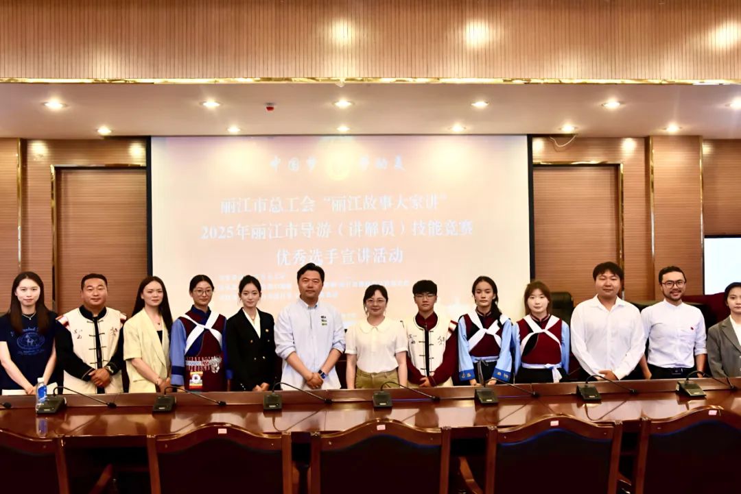6月20日,由丽江市总工会主办的“丽江故事大家讲”宣讲活动在丽江师范学院举办。活动邀请了在2025年丽江市导游(讲解员)技能竞赛中脱颖而出的10位优秀选手走进校园,与师生分享职业成长故事。
