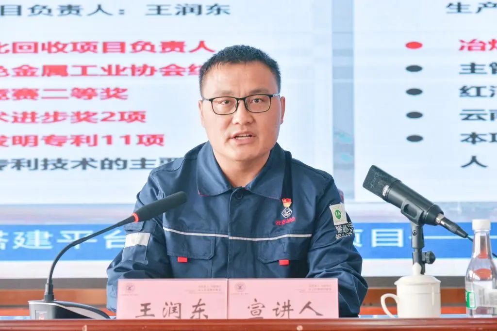 云南省“创新之星”团队主创人王润东讲述“冶炼提取残液中碲的高值化回收项目”攻关历程。团队突破“以碲捕金”等技术,建成硒碲渣全湿法处理生产线,产出99%以上碲产品,年创效1250万元,获国家发明专利2项。