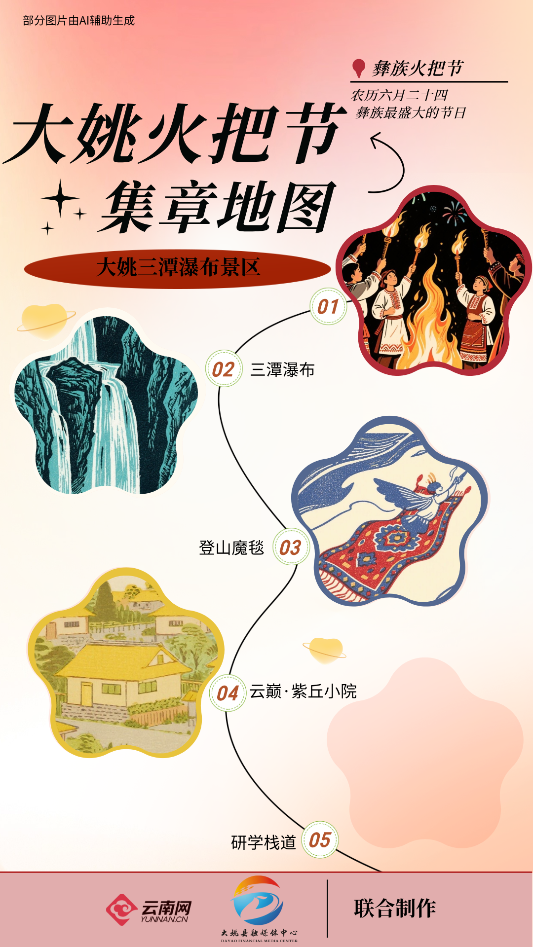 小暑刚过,意味着离火把节又近了一步。彝族千年的古韵,到处都留下了火把的痕迹。这个夏天,注定是徜徉水与火海洋的季节,位于楚雄彝族自治州大姚县境内的三潭瀑布景区,被称为“西南第一高瀑”,是火把节的发源地之一。在这里,除了可以探秘峡谷深处的瀑布奇观、体验绚丽多彩的彝族文化与动人心魄的娱乐项目、还可以慢享云巅小院的舒适惬意,深度探寻自然之美。快来跟随小编的脚步,一起集章打卡,在自然珍宝中,探寻古老的彝韵回响~