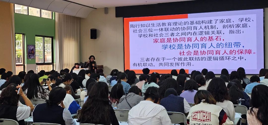 在教育事业的深耕之路上,向燕结合自身三十余年的教育实践,用劳模精神点亮育人征程,在新时代学前教育领域开拓出“家园社”协同育人的创新路径。以《共育 共生 共长——幼儿园家园社合作的新思维与新方法》为主题,围绕历程回溯、立足当下、思行并举三个方面,将劳模精神融入教育实践,重点分享了新迎第一幼儿园构建的“课程圈-家庭圈-社会圈”三圈层协同育人机制,并详细解读了“一中心、三圈层、五策略”实践体系,即以儿童发展为中心,通过固教师专业之本、拓社会资源之域、筑家园共育之桥、施日常活动之策、展实践活动之能,构建全方位育人格局。
