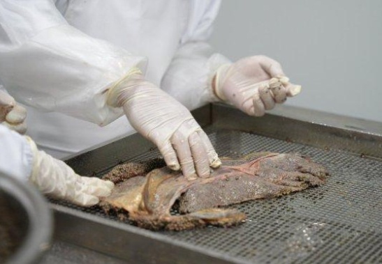 挑选好鲟鱼后便可以进行加工,鲟鱼鱼子酱的加工车间要达到10万级的洁净度,即水、空气、工作人员等都必须达到无菌操作的要求。