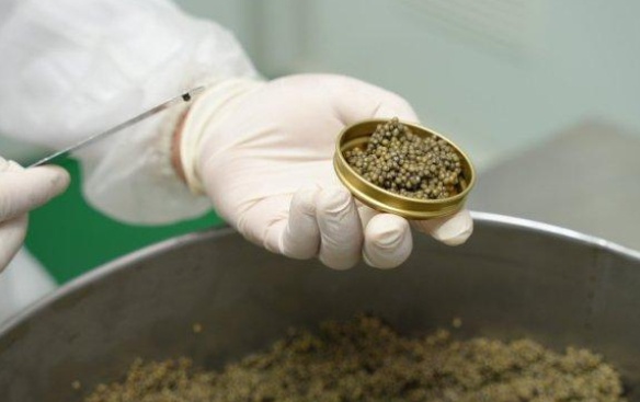 在经过取卵、搓卵、清洗、挑择、称重、拌盐、沥水等十几道工序后,鲟鱼籽的鲜与食盐中的钠离子结合形成谷氨酸钠,会释放出更加强烈的香味。美味的鲟鱼鱼子酱就制作完成了,经过冷藏储存后,鲟鱼鱼子酱就可以装罐了。