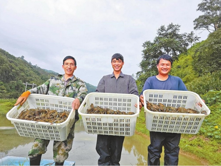 “这些澳洲淡水龙虾个头大、体形饱满,比一般的小龙虾肉多,吃起来肉质鲜美、富有弹性,已经成了市场上的‘香饽饽’。”文山全意农业开发有限责任公司总经理张云介绍,去年官寨乡产出的澳洲龙虾大量销往江浙地区,公司实现营收200余万元,带动周边村民100余人就近就地就业。