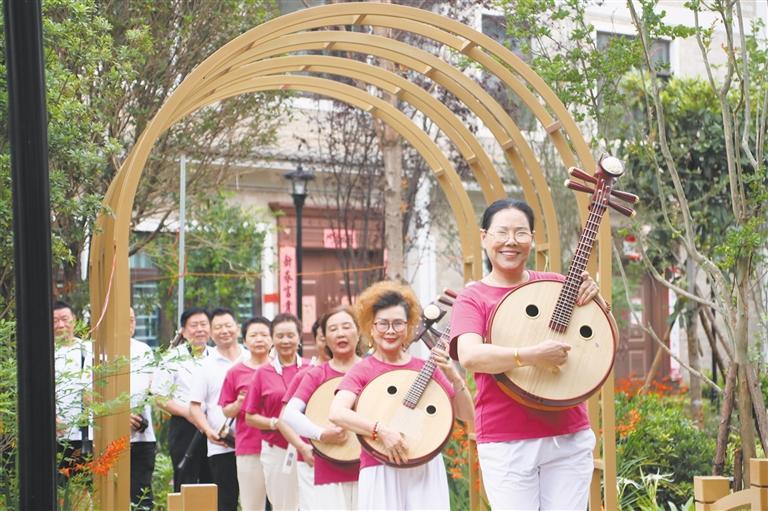 近日,笔者走进麒麟区沿江街道大龙居委会马房民宿村,只见一群旅居客正在排练节目,他们手里拿着二胡、琵琶、电吹管等乐器,或在长廊里“走秀”,或在假山前自拍,有说有笑,好不快活。