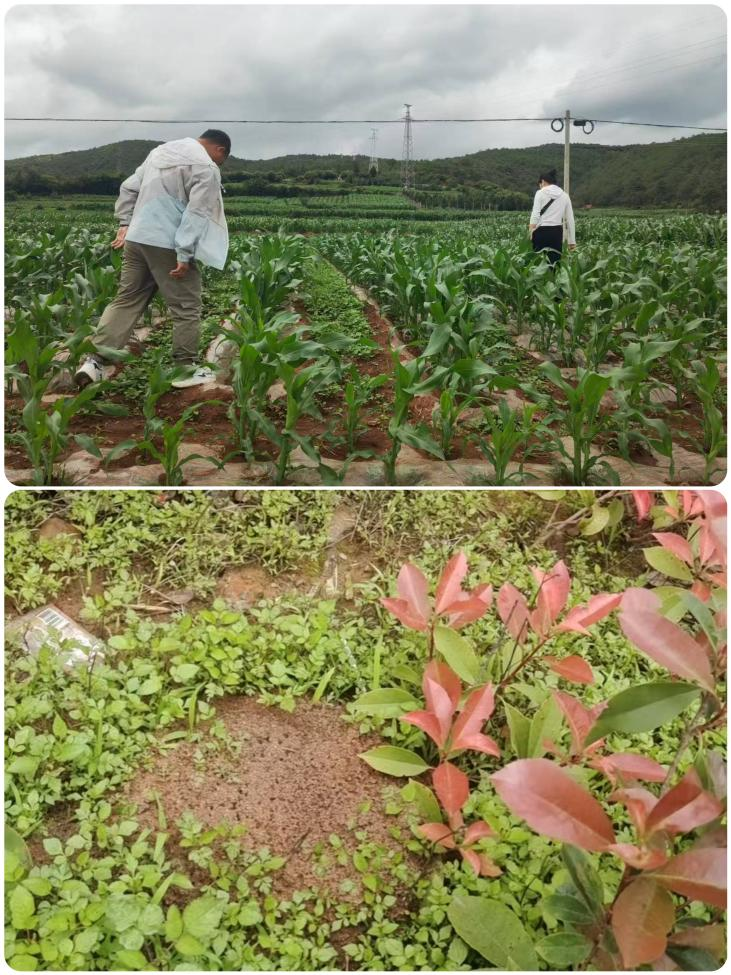 强化排查监测,提升防控整治质效。镇、村、组党员干部积极行动,深入到辖区田埂、林地、果园、绿化带等重点区域,认真开展红火蚁排查、监测预警工作,及时掌握红火蚁发生的区域、数量和危害程度,一旦发现红火蚁巢穴,立即使用专业灭杀药物进行集中消杀,确保“发现一窝,清理一窝”。同时,通过发放饵剂大家防、重点区域重点防的模式,有效降低辖区红火蚁蚁巢密度。