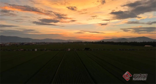 通海六一社区牛角坝塘稻田落日 龚瑞清 摄